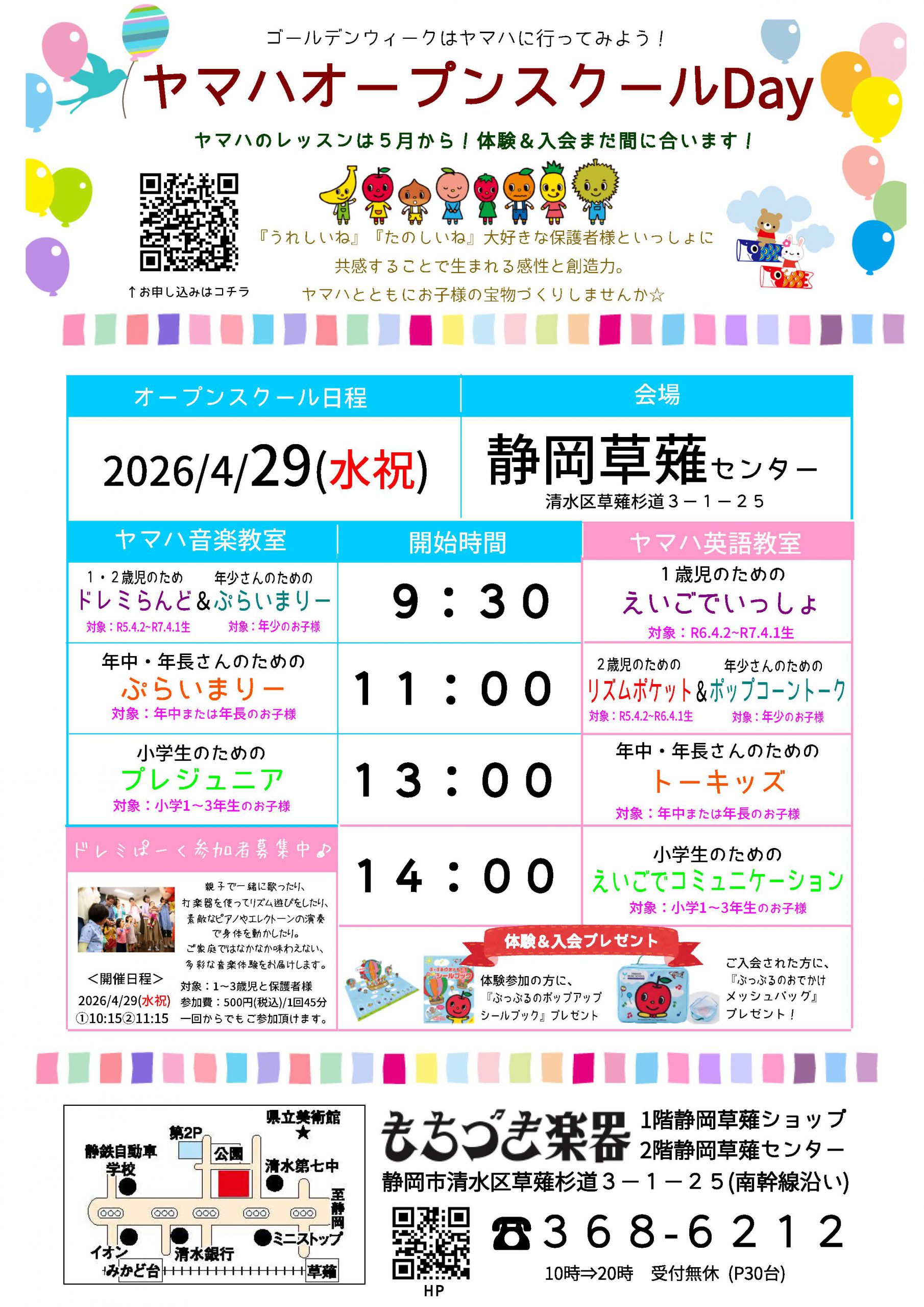 今年も4/29(水祝)に『ヤマハオープンスクール』を開催いたします^^♪