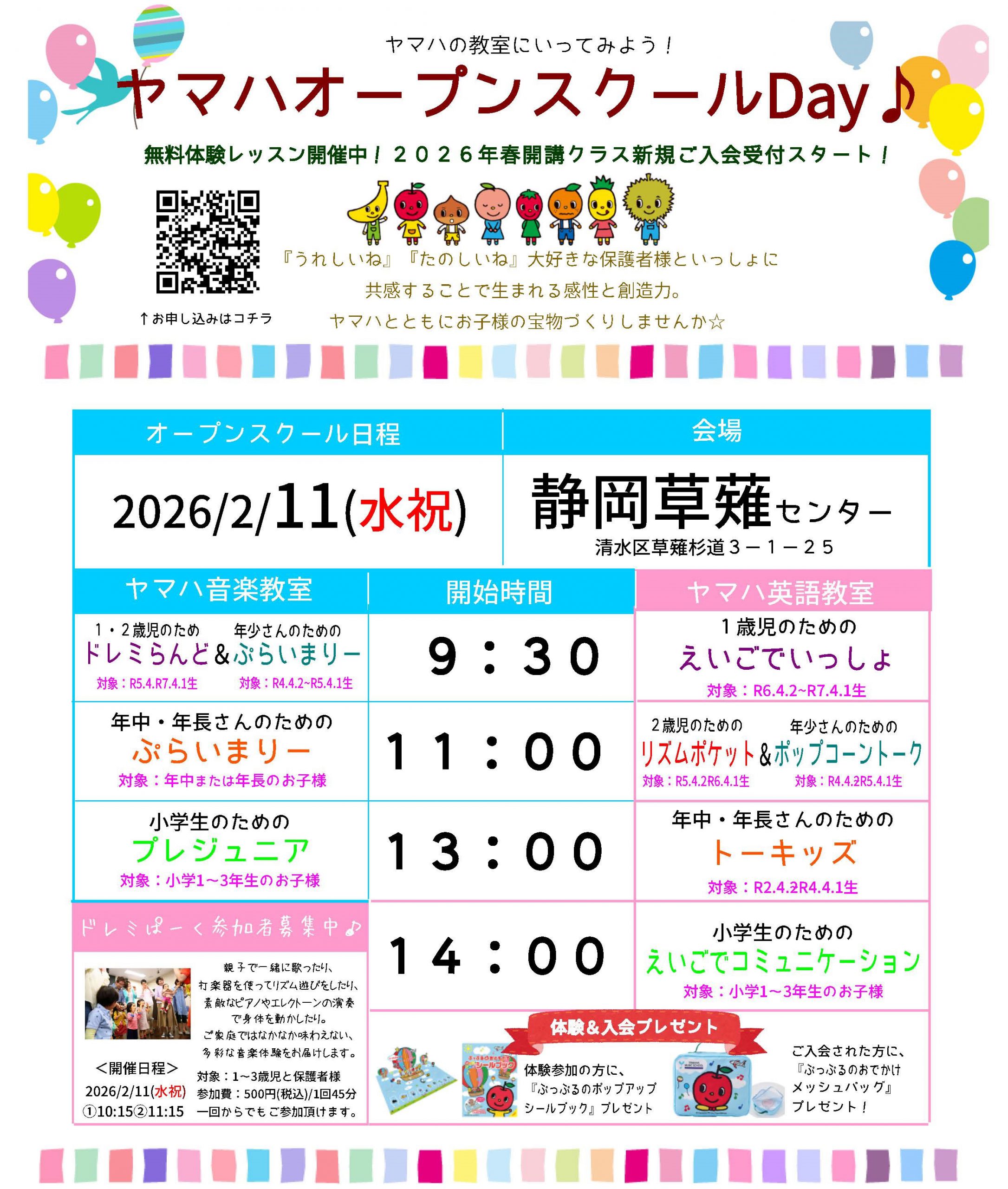 2/11(水祝)に『ヤマハオープンスクール』を開催いたします^^♪